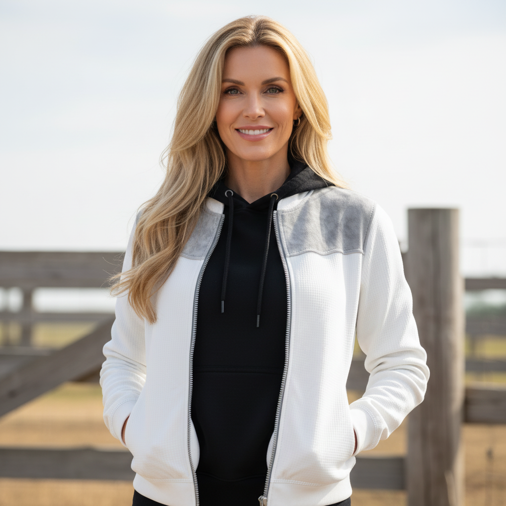 White And Gray Marble-Trimmed Zip-Up Jacket