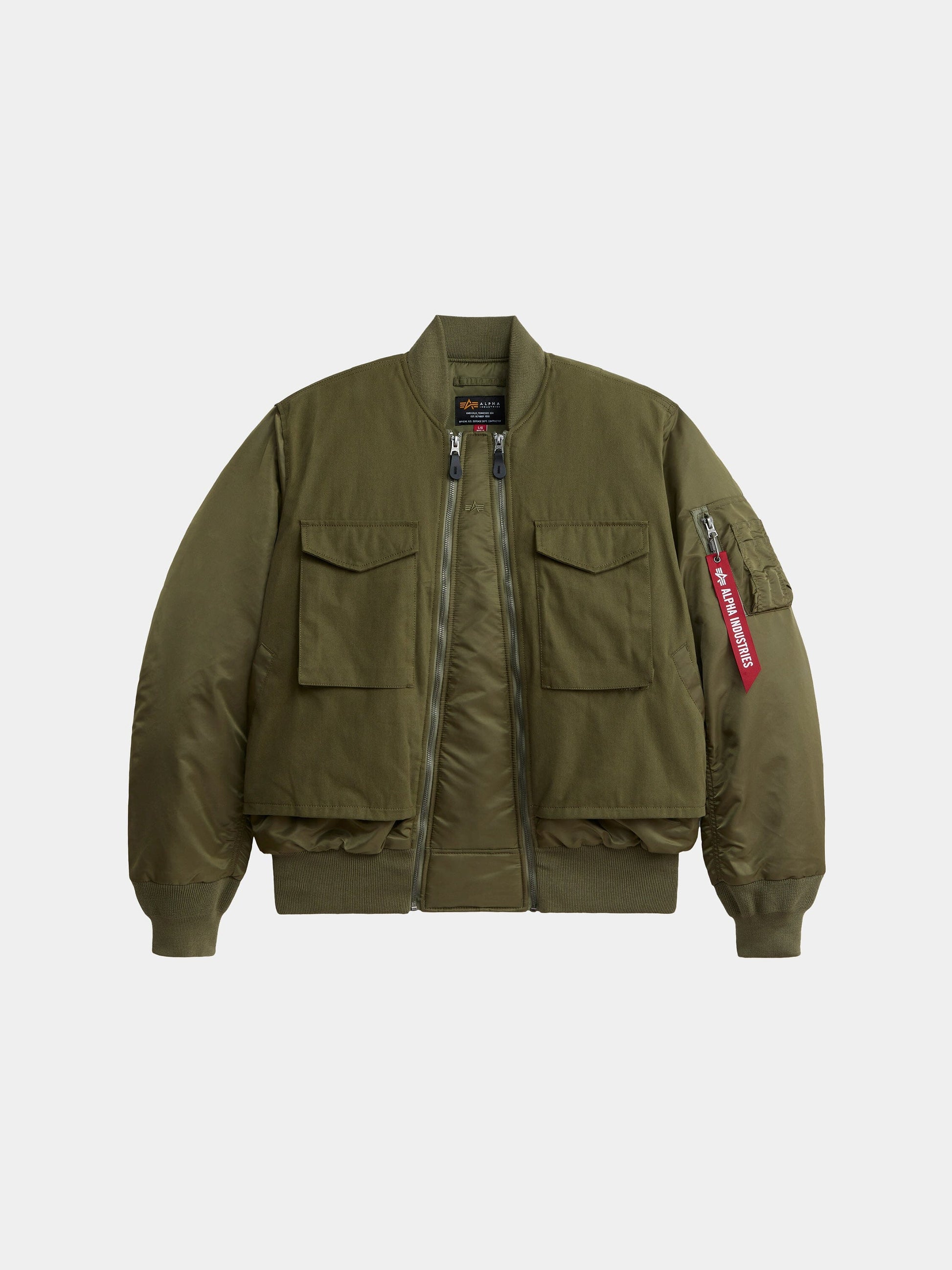 - Utility pocket on sleeve with Alpha red ribbon