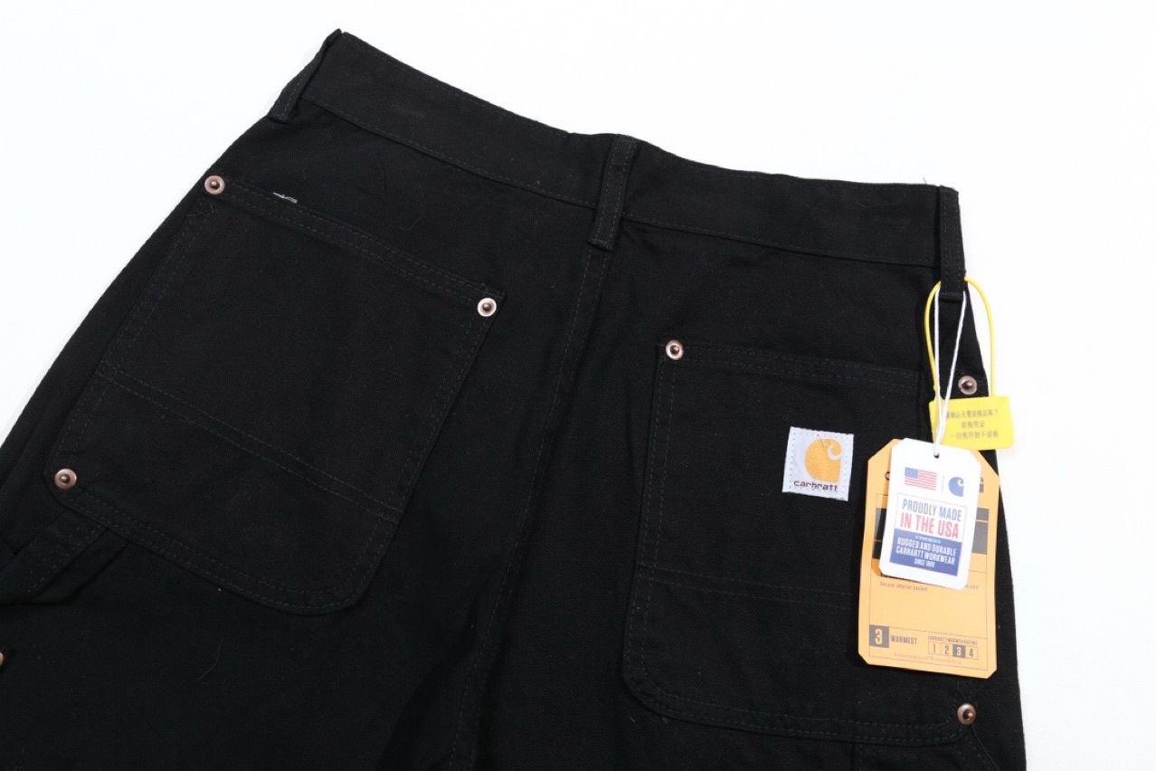 Carhartt Black Washed Double Knee Canvas Jeans with Metal Buckle Decor and Large Pockets Unisex Work Pants