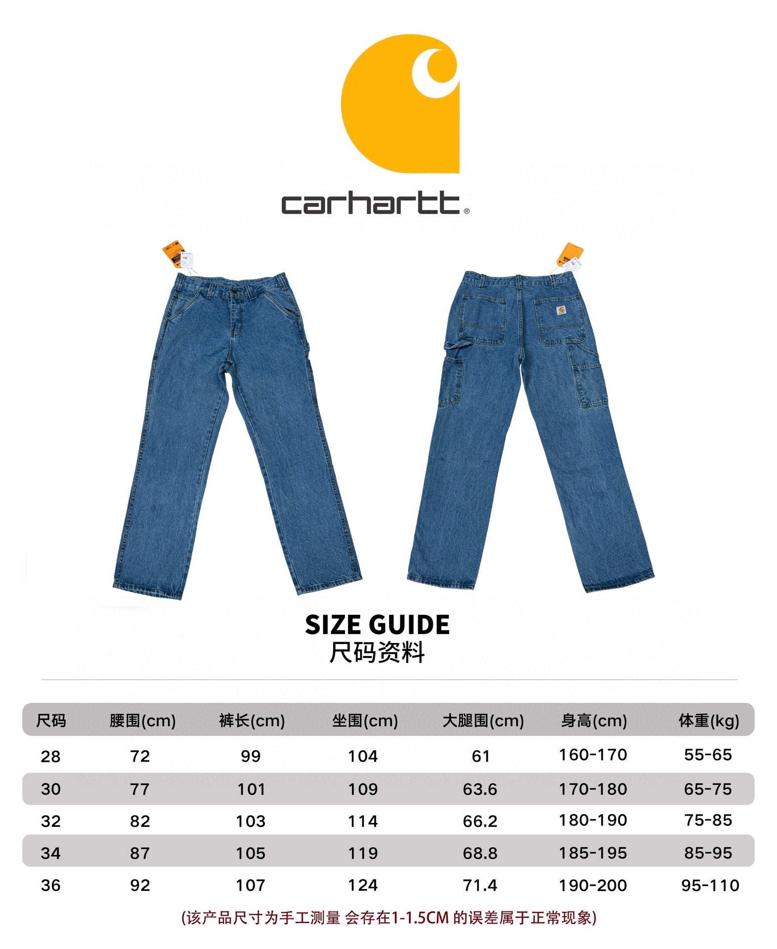 Vintage Carhartt Workwear Straight Fit Jeans Loose Washed Denim American Retro Unisex