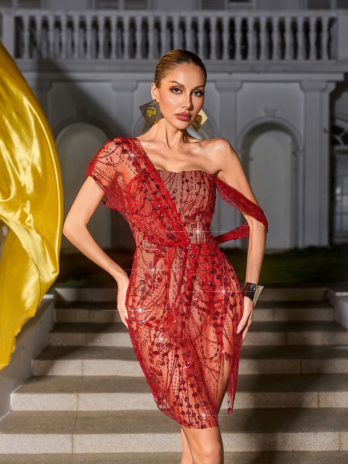 Bailee Split Sequin Mini Dress In Red