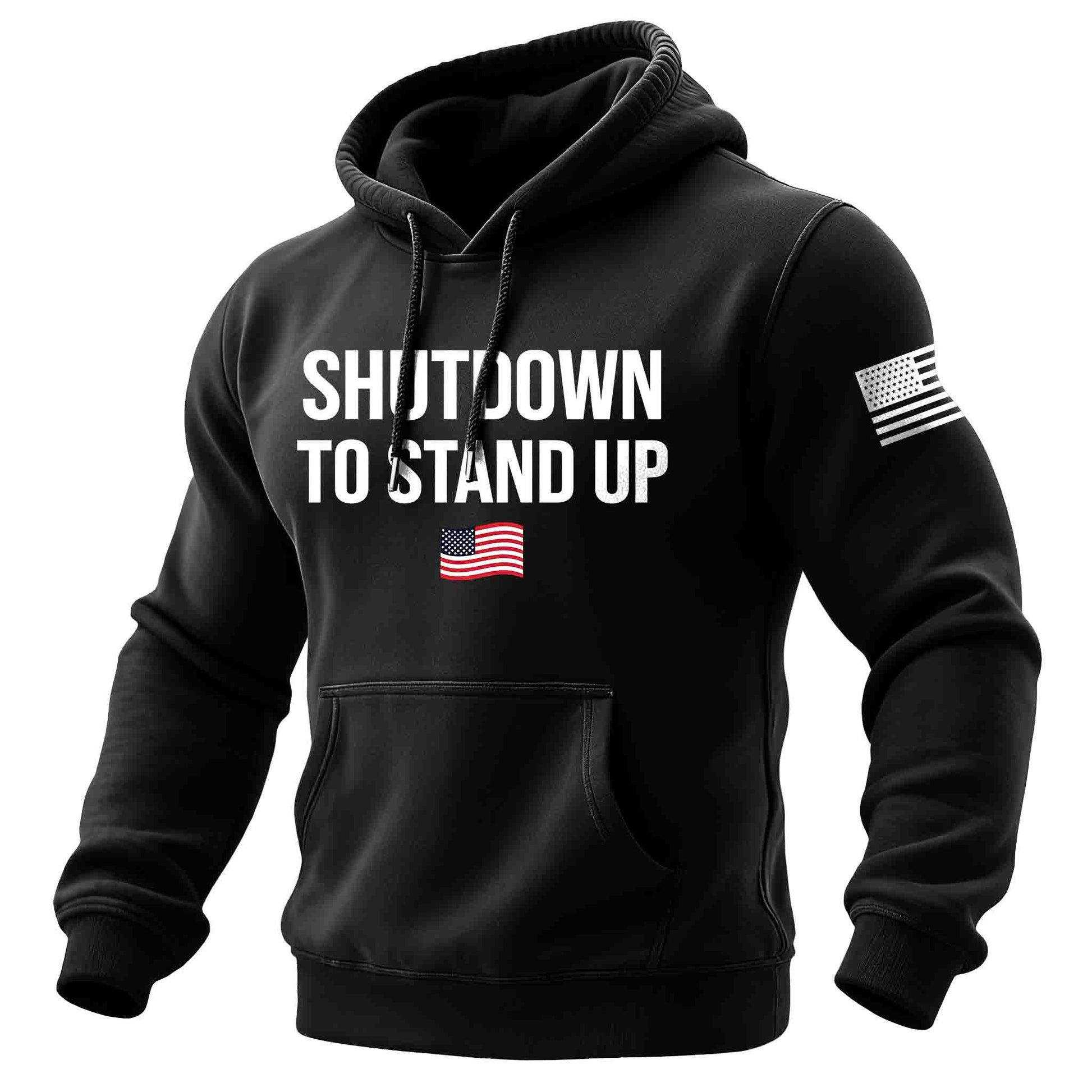 Men's Vintage American Flag Shutdown To Stand Up Print Pocket Long Sleeve Hoodie