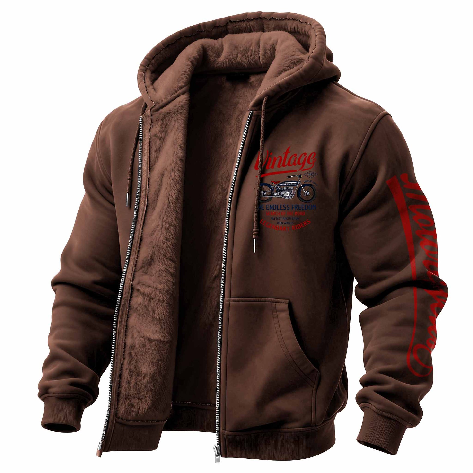 Men's Vintage Motorcycle Fleece Pocket Full Zip Long Sleeve Hoodie Jacket