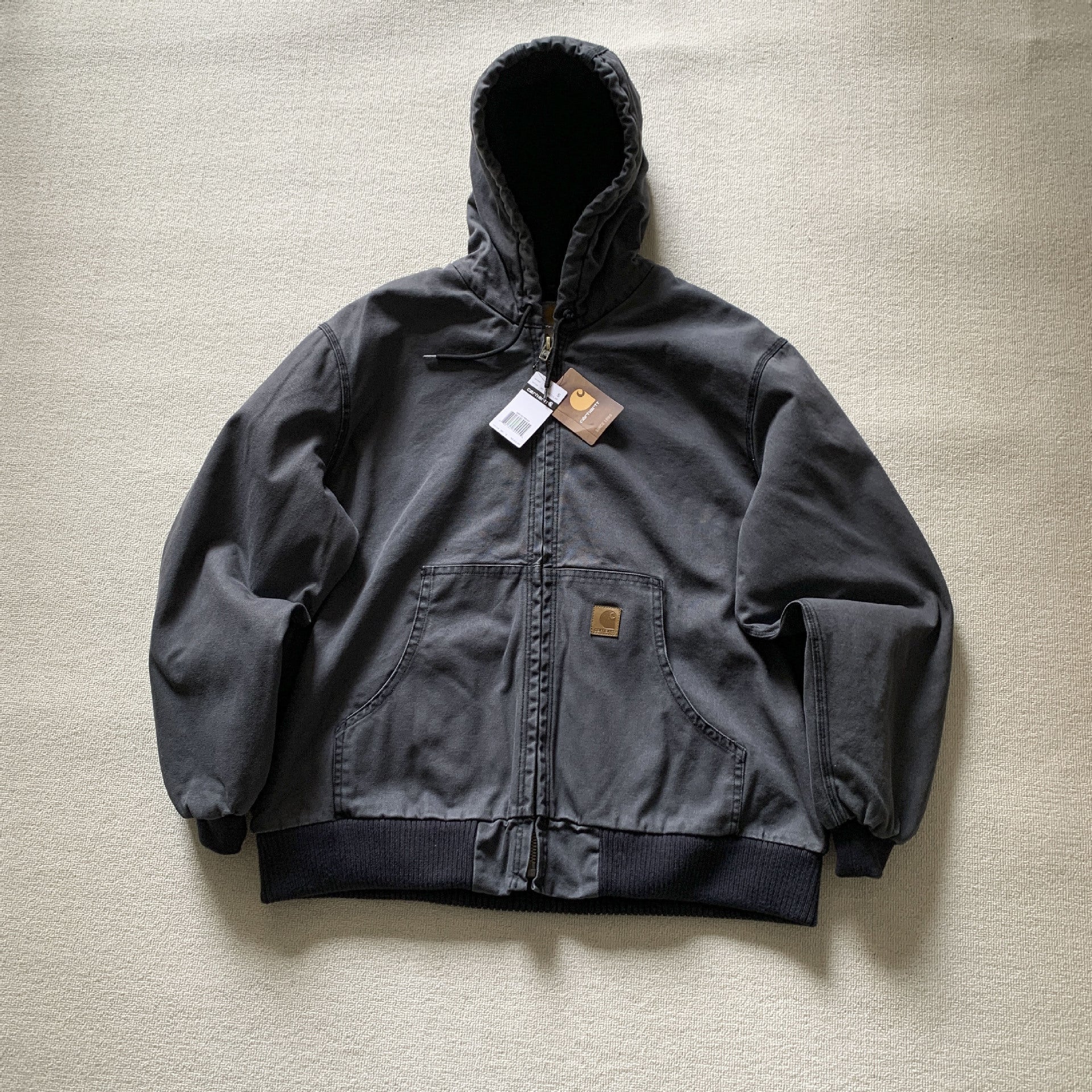 Vintage J130 washed distressed hooded zip-up jacket/padded coat