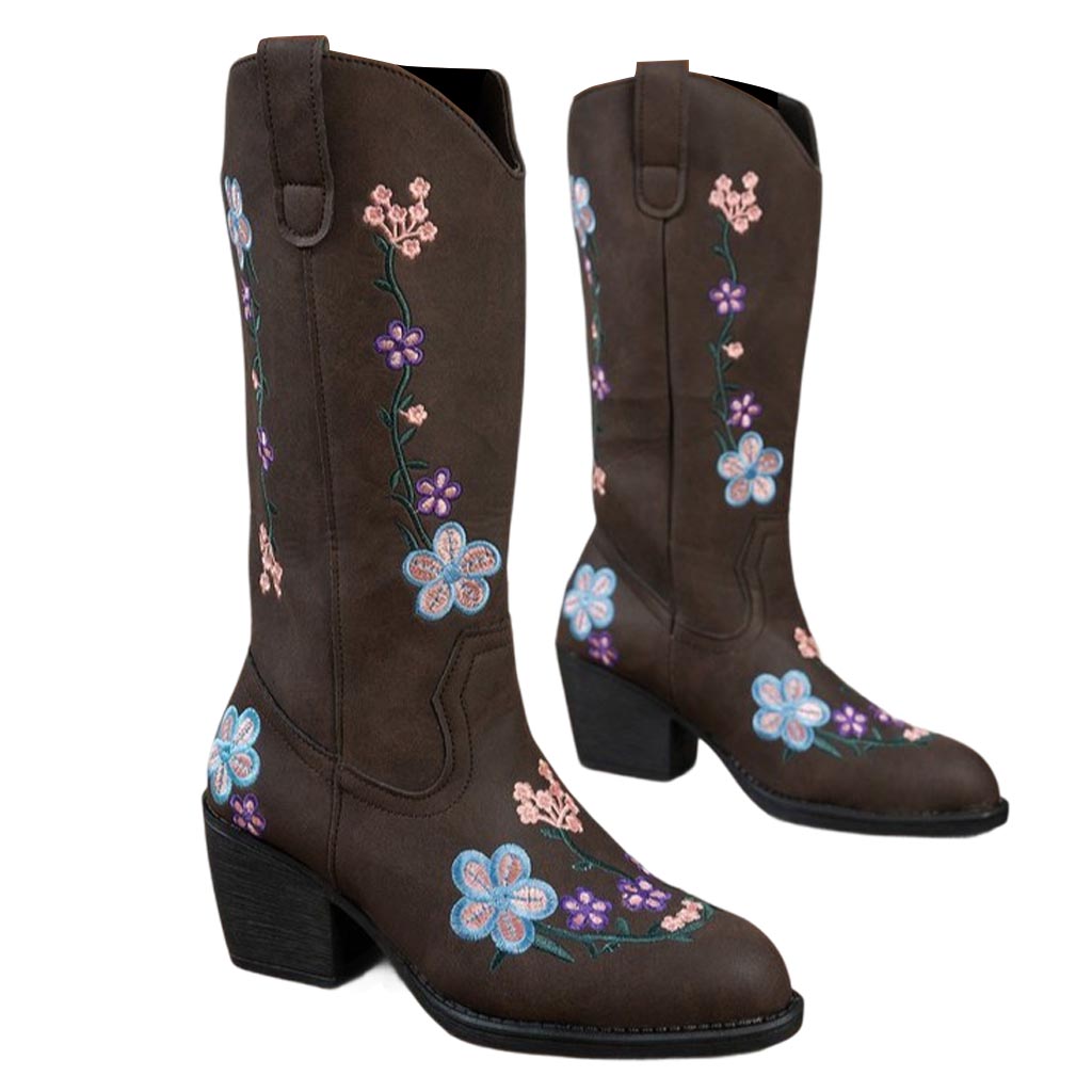 • Design Elements: Vibrant floral embroidery, classic cowboy boot silhouette, mid-calf length
